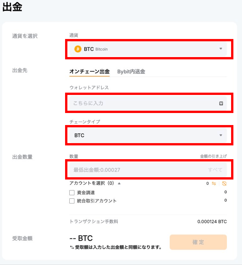 - 通貨: STEP 1でBitget側で選択したのと同じ「BTC」を選択