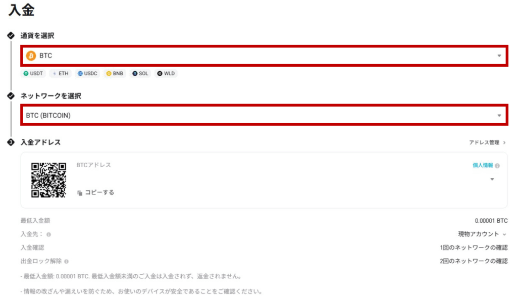 - Bitgetで正しいネットワークと暗号資産を選んで入金アドレスを取得
