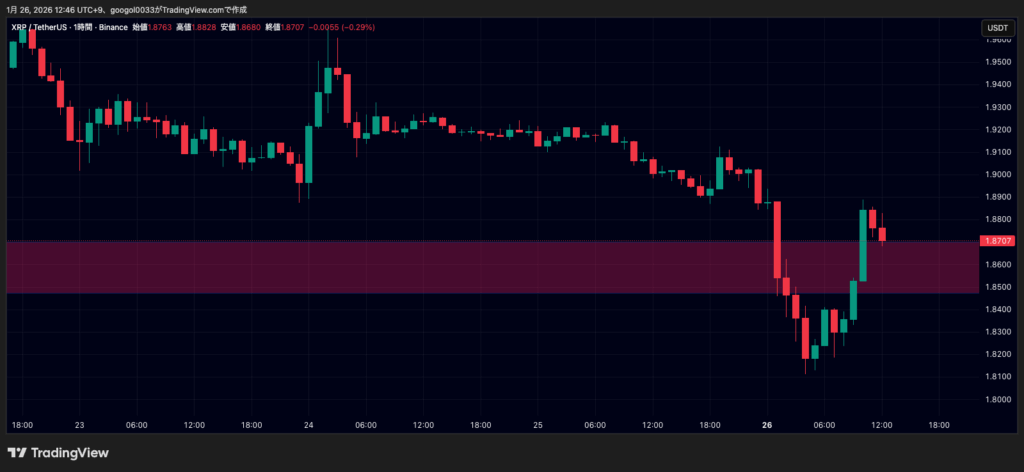 アルトコイン市場全体がビットコインの動向に敏感に反応している現状では、XRPも独自の材料がない限りBTCの値動きに左右されやすい局面が続くとみられます。特に1月30日の米国予算期限を控え、市場全体のボラティリティが高まる中、慎重な値動きが続くか注視が必要でしょう。