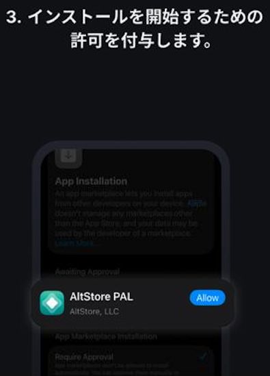 ここで許可を行うと、AltStore PALのインストールが開始されます。