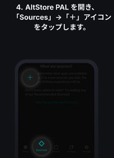 画面下部の「Sources」を開き、「+」アイコンをタップしてください。