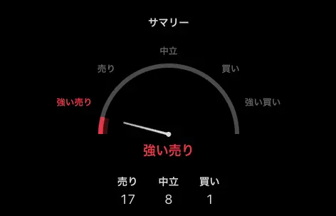 今後の株価動向をテクニカル面からみると、2026年2月時点のTradingView分析では、オシレーターは中立圏、移動平均は「強い売り」とされ、全体評価は「売り」となっています。