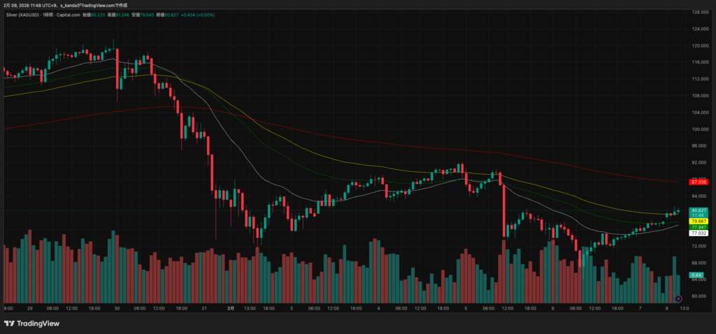 銀も2月9日に80ドル台まで上昇するなど反発が進んでおり、金融政策や地政学要因を背景とした資金の動きに市場の注目が集まっています。