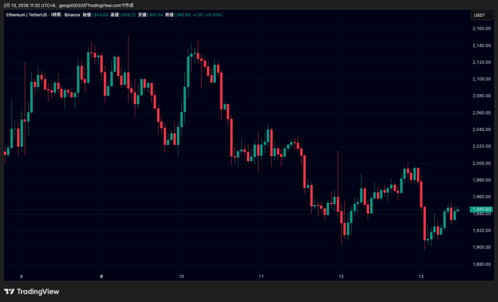 イーサリアム2000ドル割れ、1900ドル台で攻防続く