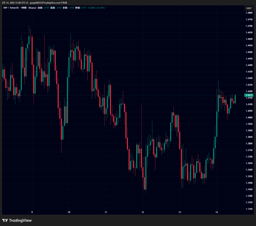 リップルは13日未明に1.34ドル台後半まで下落しましたが、その後は反発基調へ転じました。