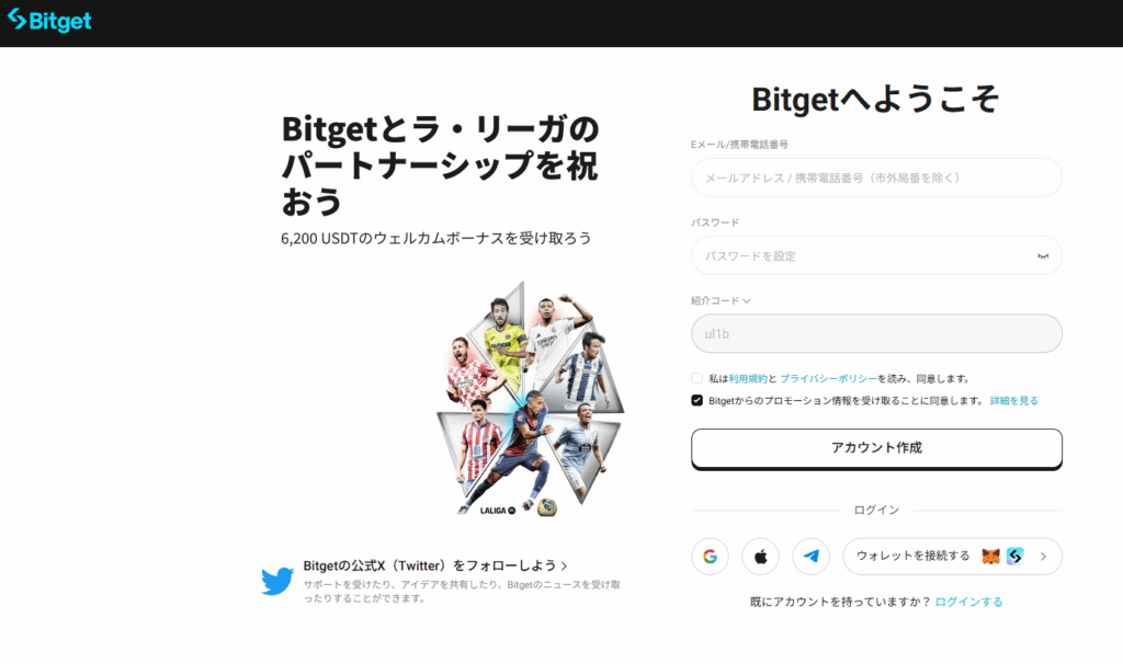 - Bitget または MEXC の指定した招待リンクから新規登録