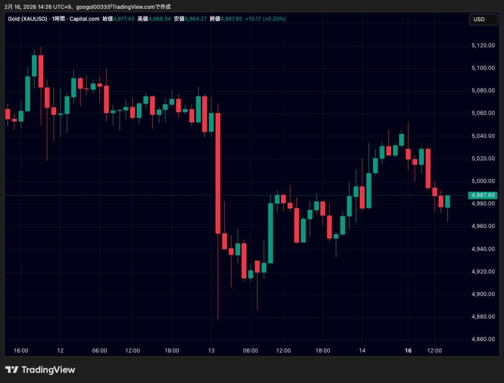 高値は4985ドル台、足元は4980ドル台前半で推移しています。