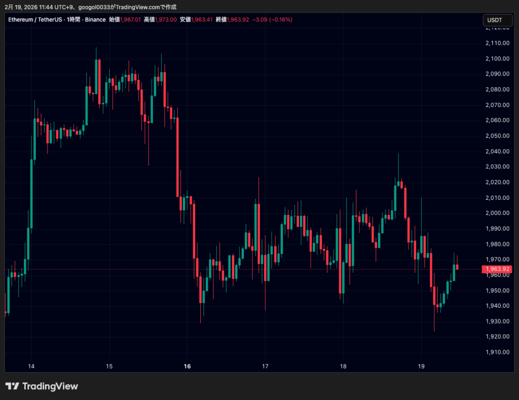 イーサリアム(ETH)は19日時点で1966ドル付近です。