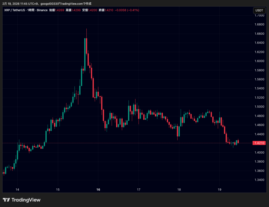 リップル(XRP)は19日時点で1.42ドルです。