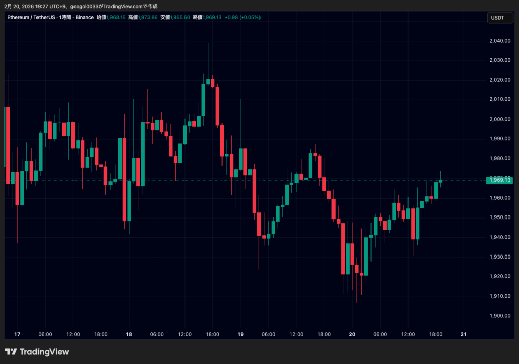イーサリアム1910ドル台から反発、1960ドル台回復