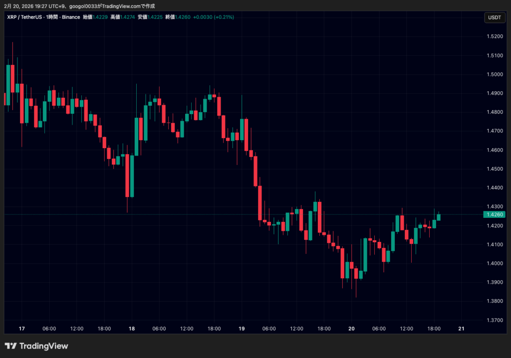 XRPは1.39ドル付近まで下押しした後、1.42ドル台を回復しました。
