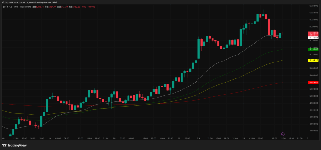 同日ベースで2%超の上げとなって3週間ぶりの高値圏に入り、約1カ月ぶりに5,200ドル台を回復しました。2月24日は、前日比でおおむね61ドル程度の調整となる5,167ドル前後で推移しました。