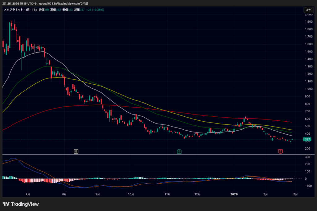 2月26日の東京証券取引所スタンダード市場で、メタプラネットは反発しました。