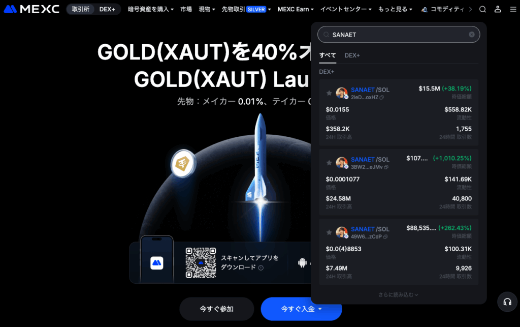 MEXCにサナエトークン(SANAET)が上場した際は、以下の手順で購入できます。