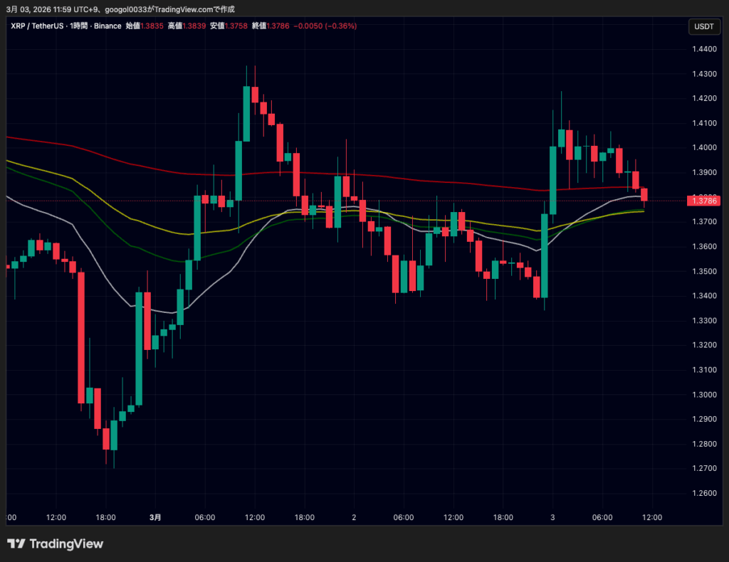 リップル(XRP)も朝方に買いが入り、一時1.40ドルを回復しました。