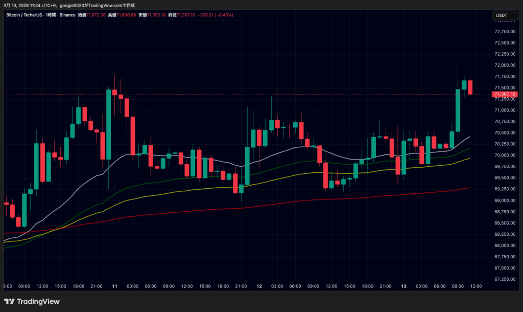 13日11時時点では、7万1595ドル前後で推移しています。