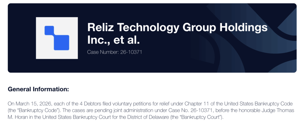 同社の運営主体であるReliz(レリズ)は、2026年3月15日にデラウェア連邦破産裁判所へ自主的な破産申請を行ったと発表しています。Blockfillsはシカゴを拠点とする暗号資産の流動性プロバイダーで、機関投資家向けにデリバティブ取引や貸付サービスを展開してきました。