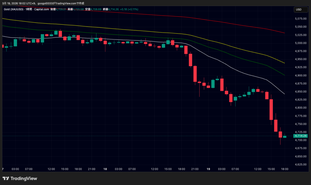 3月19日の金融市場では、FOMC通過後に金(ゴールド)とビットコイン(BTC)がそろって下落しました。